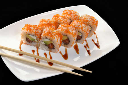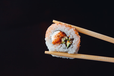 Sushi roll on black background. Japan food concept