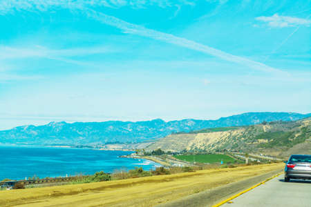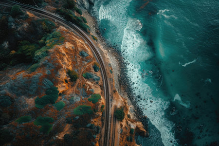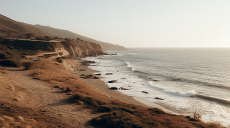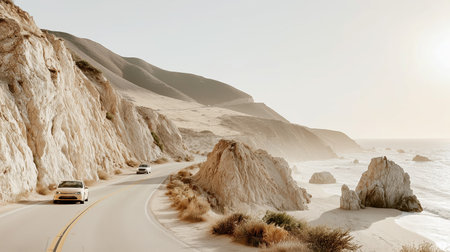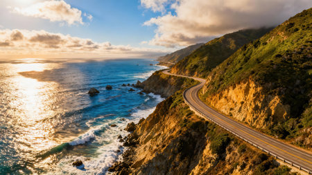 scenic road trip down the coast with rolling waves and scenic views, created with generative ai