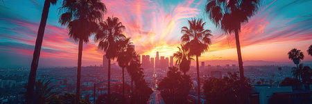 Los Angeles skyline during a mesmerizing sunset AI generated