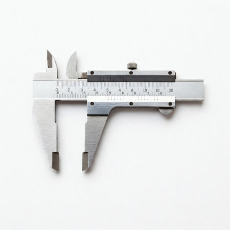 Image shows a close-up of a vernier caliper used for precise measurements in engineering
