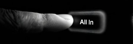A finger hesitates over the All In button on the screen, portraying a moment filled with tension and uncertainty during a crucial decision-making time.
