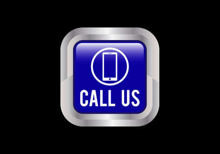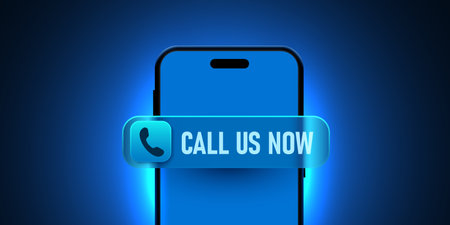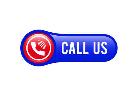 Call us Now blue button in neuromorphism style - template for phone number in website header - conspicuous sticker with phone headset pictogram