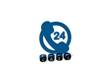 3D graphical image of call vertically along with text built by metallic cubic letters from the top perspective, excellent for the concept presentation and slideshows. phone and business