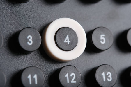 Close up of numerical dial buttons on an old analog phone. Shallow depth of field. High quality photo