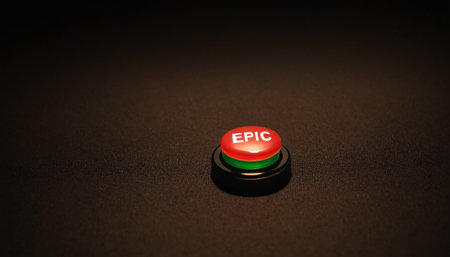 A luminous green-ringed button featuring a square icon radiates vibrant light against a smooth, dark control surface, highlighting a futuristic interface element.