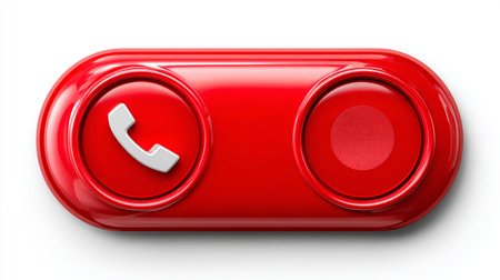 A red callback button with a phone icon symbolizes communication and offers customer support functions.