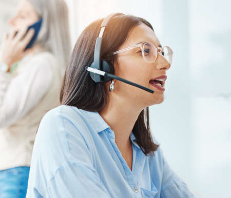Well see it through to a solution for you. a young businesswoman working in a call centre.