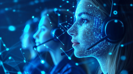 Customer support call center provide data in conceptual vision . Business and communication technology concept .