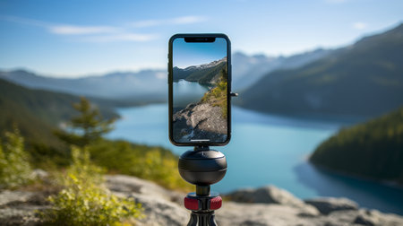 taking a photo during summer vacation in the mountains with your smartphone