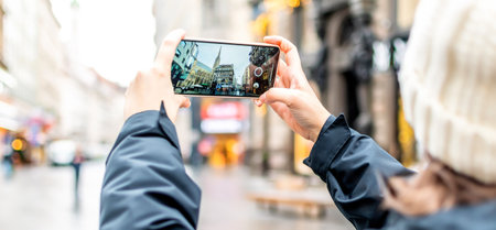 Photographing with smart phone in hand. Travel concept. Wien. Vienna.