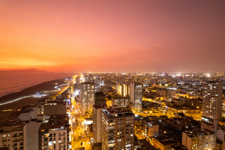 Night view of the city of Lima in the municipality of San Miguel. Peru