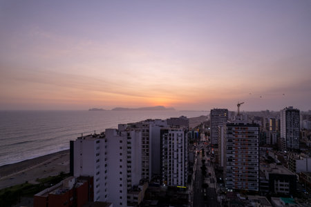 Sunset view from La Bajada de Balta in Miraflores, in the city of Lima. Peru