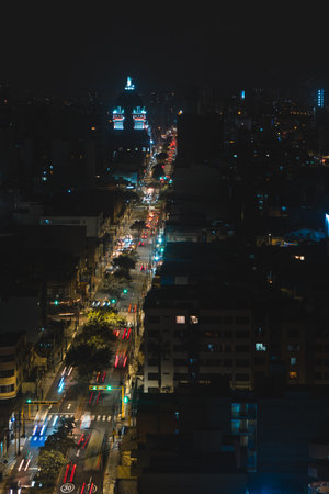 Night traffic flowing in Lima, Peru. In the district of Magdalena del mar