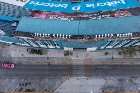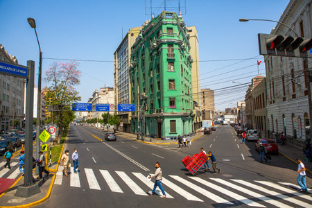 Aerial perspective view of Lima Peru, streets without cars, city without people. Coronavirus outbreak in South America.