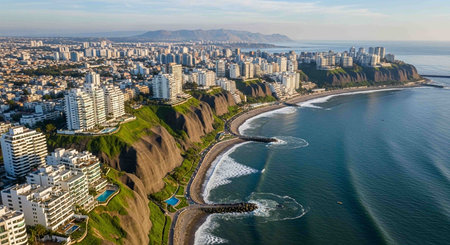 The Pacific Ocean warms the shores of Lima, the capital of Peru. Beautiful urban nature in latin America.