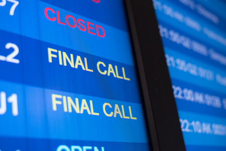 airport flight time schedule on board. selective focus on FINAL CALL word. time concept