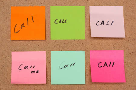 Call Me writings on the papers attached on the cork board