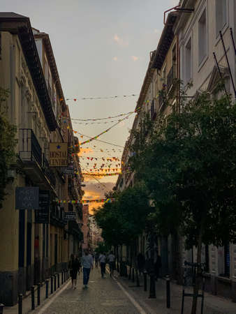 Valencia, Spain; June 11 2020: Street with cars in the neighborhood called Barrio del Carmen in Valencia.