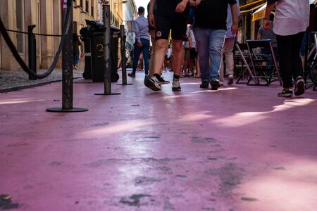 Blurred crowd of unrecognizable at street. Crowd of anonymous people walking. Pedestrian blur, crowd of people walking in city, panoramic view of people on street