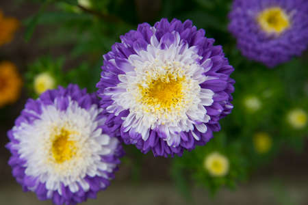 Close up of the purple Aster (Callistephus chinensis) in the garden