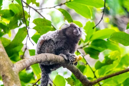 Marmoset Monkey in green tropical jungle rainforest in Rio de Janeiro State of Rio de Janeiro Brazil.