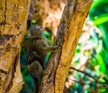 pygmy marmoset climbing in a tree, worlds smallest monkey, Small tropical primate specie from America