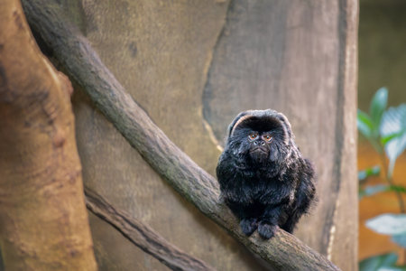 Monkey sitting on a tree branch in the zoo. Goeldi's marmoset, or Goeldi's monkey (Callimico goeldii)