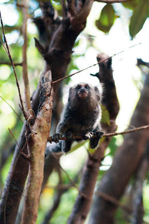 A Marmoset in a tree in the Sao Paulo Zoo, in Brazil.