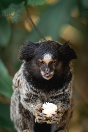 close up from a Sagui monkey in the wild, in the countryside of São Paulo Brazil.