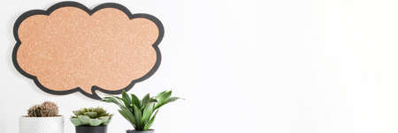 plants with blank sign on white background. copy space, advertisement, presentation. New ideas, creativity and think out of the box concept banner