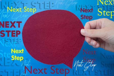 Speech bubble in front of colored background with Next Step text.