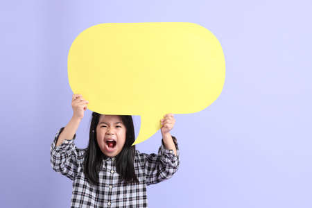girl holding speech bubble banner