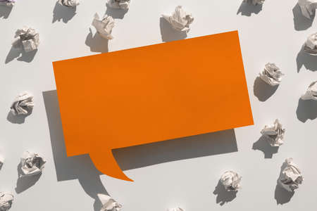 Paper Wraps Placed Around Speech Bubble With Important Information. Wrinkled Notes Arranged All Over Dialogue Ballon With Crutial Message. Crumpled Memos With Critical Data In