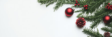 Contemporary Christmas background with pine branches and clean white layout.