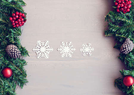 Christmas background and red decorations at color background.