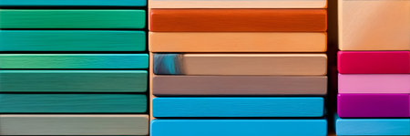 Colorful wooden blocks stacked in an organized pattern