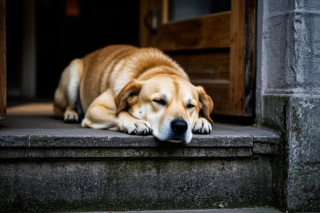a sleeping dog in a quiet and dimly lit room, created with generative ai