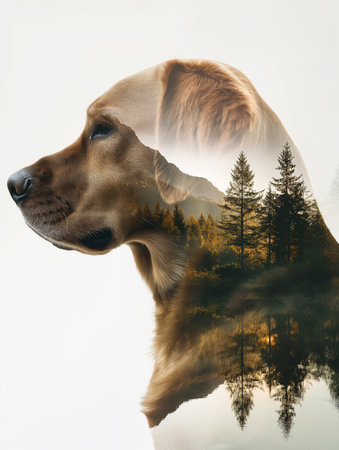 Illustration shows a dog sitting calmly against a neutral background with soft colors and a clean composition focusing on the dog.