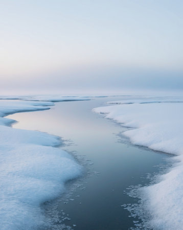 Arctic Tranquility. Icy Landscape with Frozen Water and Ice Formations, Minimalist Nature Background