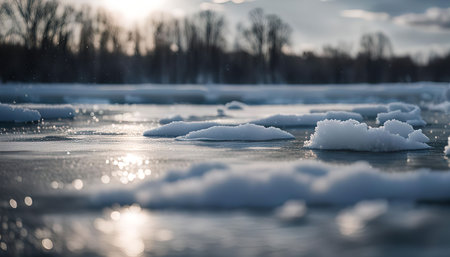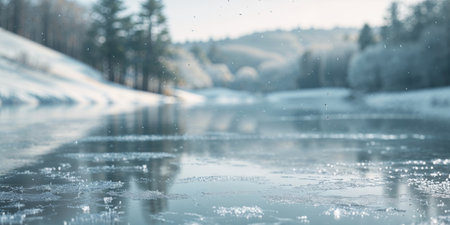 AI Generated. Frosty Reflections on a Shimmering Surface in Winter Landscape