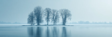Serene Winter Morning Splendor A Snow-Covered Island Reflecting Peaceful Hues of Blue and White