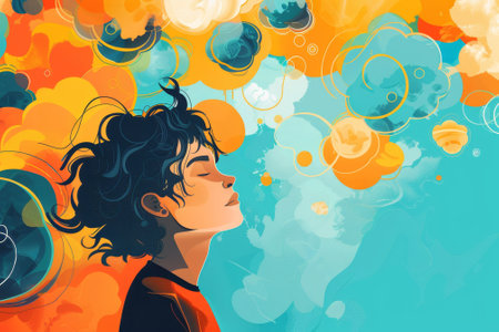 A young person is depicted in profile against a colorful background with swirling smoke creating an artistic and dreamlike atmosphere.