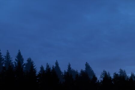 Mysterious nocturnal night cloudy sky against mystery silhouettes of fi trees.