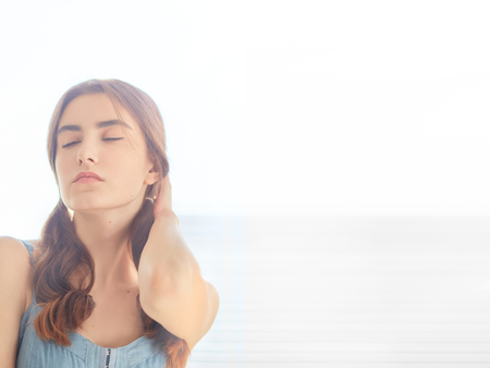 thoughtful young woman with closed eyes