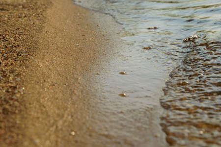 Soft wave of the sea on the sandy beach. Shallow depth of field.