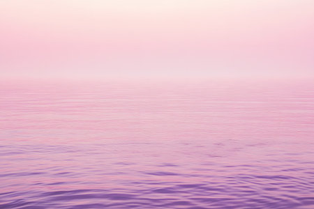 A breathtaking view of a serene ocean horizon at sunset, featuring a stunning gradient of pink and blue hues reflecting on a calm water surface, ideal for evoking tranquility.