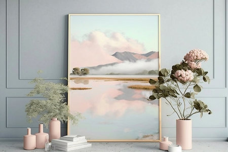 Picture with nature in pastel colors. Contemporary art for background. Generative AI