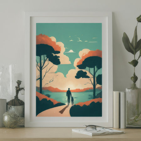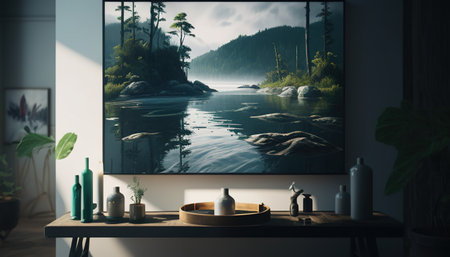 serene landscape painting, digital art illustration, Generative AI