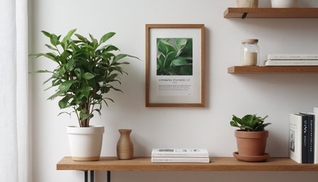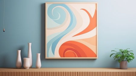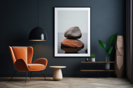 Stylish composition with a poster in a frame and minimal deco. Generative AI.