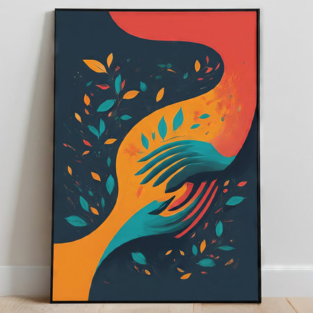 This captivating artwork showcases a vibrant tree framed against a bold, colorful background, combining nature and modern design for a striking visual appeal.